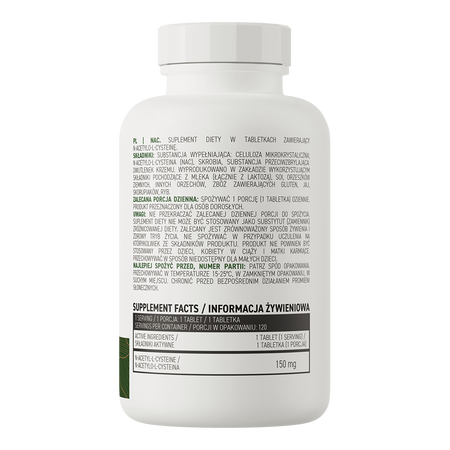 - Source de N-acétyl-L-cystéine - une portion du complément alimentaire apporte à l'organisme 150 mg de NAC.