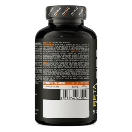 Une ingestion unique de plus de 800 mg de bêta-alanine peut entraîner des effets secondaires (picotements, engourdissements). Il est conseillé de consommer une portion unique de 800 mg avec une pause d'au moins 3 heures entre les portions individuelles du produit. Le produit est destiné aux personnes ayant une activité physique accrue.