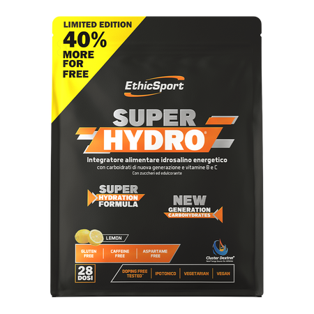 EthicSport Super Hydro favorise le bon équilibre hydrique et électrolytique de l'organisme grâce à sa teneur en précieux minéraux et vitamines, contribuant ainsi au maintien de l'homéostasie et à une performance optimale pendant un effort physique intense. Le complexe de glucides SH assure une libération progressive d'énergie, tandis que les électrolytes favorisent le bon fonctionnement des muscles et du système nerveux.