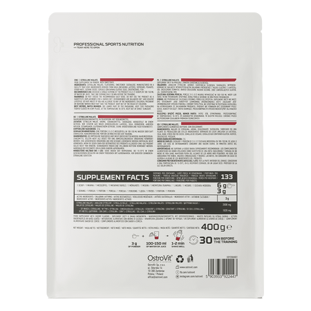 La formule OstroVit utilise du citrulline malate, une forme du composé qui se distingue par une excellente biodisponibilité et ergogénicité, ce qui a un effet positif sur la qualité du produit et l'efficacité de la supplémentation.