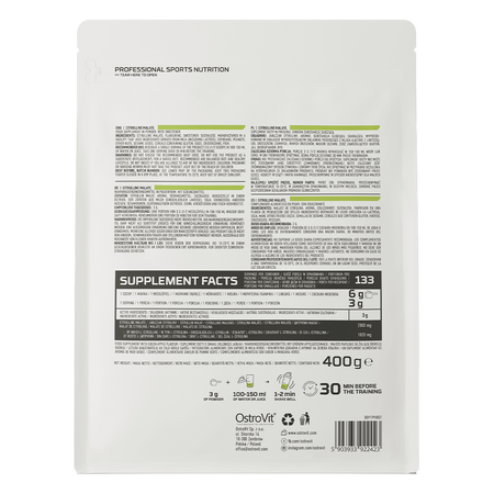 La formule OstroVit utilise du citrulline malate, une forme du composé qui se distingue par une excellente biodisponibilité et ergogénicité, ce qui a un effet positif sur la qualité du produit et l'efficacité de la supplémentation.