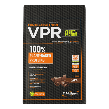 EthicSport VPR Vegetal Protein est un complément alimentaire de haute qualité sous forme de poudre au goût de cacao, qui fournit une composition complète de protéines végétales: isolat de protéines de pois, protéines de graines de courge et protéines de riz. Le produit a été enrichi en vitamine B12 et conçu pour les personnes physiquement actives et toutes celles qui ont besoin de compléter leur alimentation quotidienne en protéines.