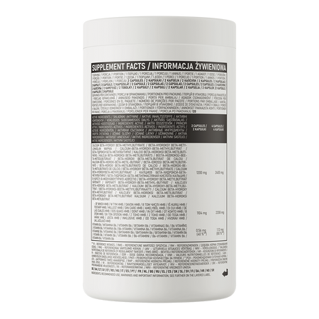 - Source de HMB - une portion du complément apporte à l'organisme 1200 mg de bêta-hydroxy bêta-méthylbutyrate de calcium.